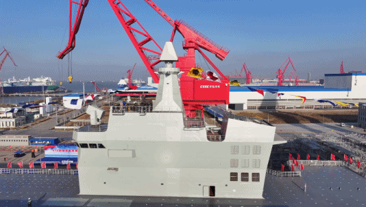 作为海军新一代两栖攻击舰,四川舰是推进海军转型建设发展、提升远海作战能力的关键装备,满载排水量4万余吨。